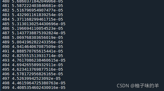 此處解釋一下上次發(fā)的一篇中,有猿友對(duì)其中的loss有疑問(wèn),其實(shí)我認(rèn)為:損失值loss只是為了檢測(cè)網(wǎng)絡(luò)的學(xué)習(xí)情況(至少我在這幾篇中的loss就只有這個(gè)功能),在前面那一篇中迭代沒(méi)有清零,所以損失值是一直增加的,如果每次迭代以后置零,效果和現(xiàn)在是一樣的。至于其中的除以2000只是為了便于顯示,可以一目了然大小的變化所以那么寫的,所以可以自己定義合理的寫法。(僅個(gè)人的理解和看法)