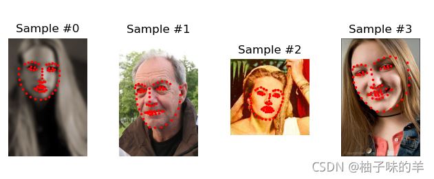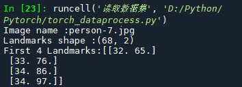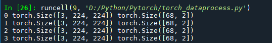 transformed_dataset=FaceLandmarksDataset(csv_file='D:/Python/Pytorch/data/faces/face_landmarks.csv', root_dir='D:/Python/Pytorch/data/faces/', transform=transforms.Compose([ Rescale(256), RandomCrop(224), ToTensor() ])) for i in range(len(transformed_dataset)): sample=transformed_dataset[i] print(i,sample['image'].size(),sample['landmarks'].size()) if i==3: break