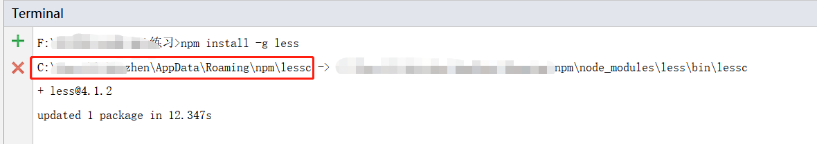 2.點(diǎn)開pycharm左下角的Terminal,輸入 npm install -g less ,安裝less:
