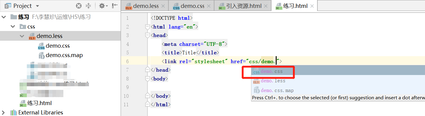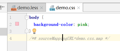 ctrl+s 保存之后,可以看到demo.css文件中自動(dòng)生成了如下代碼(自動(dòng)將less文件轉(zhuǎn)化為了css文件):