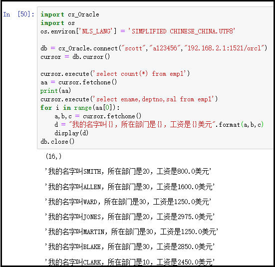 以上就是python實現(xiàn)與Oracle數(shù)據(jù)庫交互操作示例的詳細內(nèi)容,更多關(guān)于python與Oracle數(shù)據(jù)庫交互操作的資料請關(guān)注本站其它相關(guān)文章!