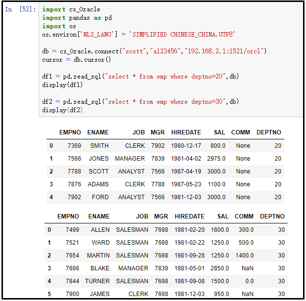 df1 = pd.read_sql("select * from emp where deptno=20",db)