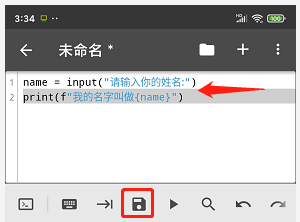 點擊“編輯器”,我們就可以在這個界面輸入我們的Python腳本了,如下我們寫了一個簡單的Python腳本,記得編寫完成后,點擊那個“保存按鈕”。