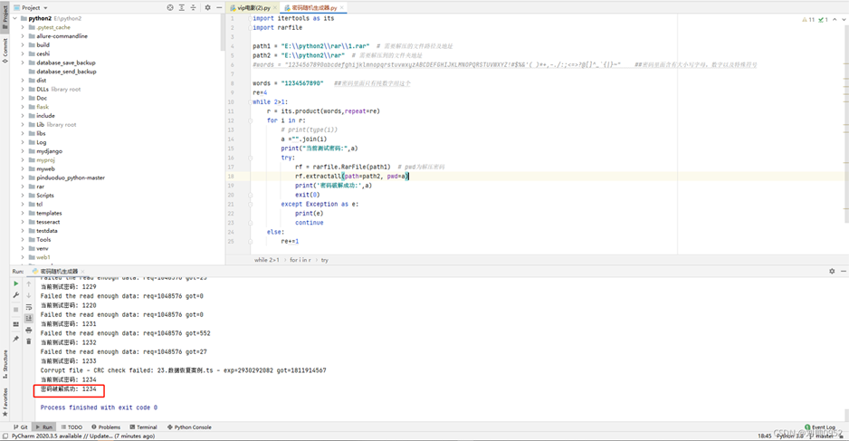 python生成遍歷暴力破解密碼(這里已遍歷暴力破解rar為例,只提供生成密碼以及遍歷密碼)