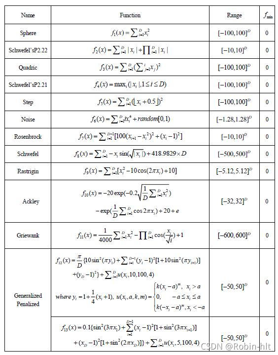 基準(zhǔn)函數(shù)是測(cè)試演化計(jì)算算法性能的函數(shù)集,由于大部分基準(zhǔn)函數(shù)集都是C/C++編寫,Python編寫的基準(zhǔn)函數(shù)比較少,因此本文實(shí)現(xiàn)了13個(gè)常用基準(zhǔn)函數(shù)的Python版。