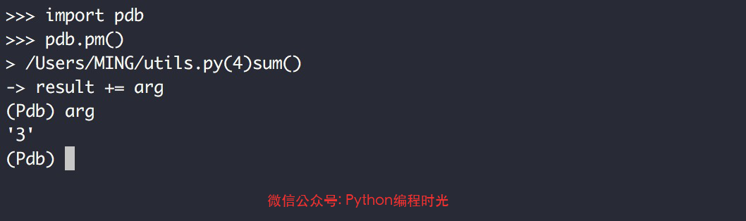 其中,pdb.pm() 是本文的重點(diǎn),他雖然冷門,但卻很好用,推薦給大家。