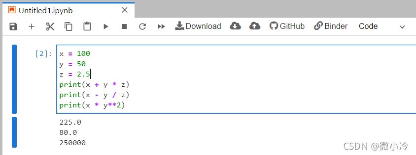 點擊Python3,快速進入jupyter notebook的環(huán)境。然后按照直覺,寫一些四則運算表達式,例如這些: