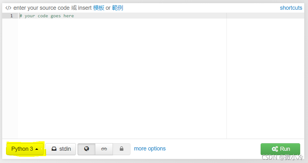如果覺得在線Jupyter工具不好用,還有這個ideone,進入之后選擇python,輸完代碼后選擇run。