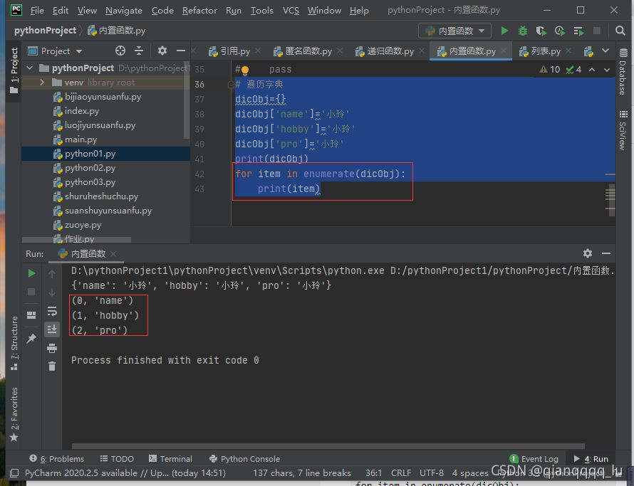 for index,item in enumerate(dicObj): #將索引下標(biāo)使用變量來自接受