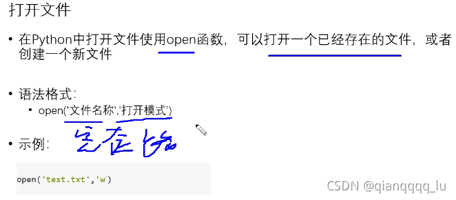 # 打開文件 open 打開已存在文件 或者創(chuàng)建一個新文件
