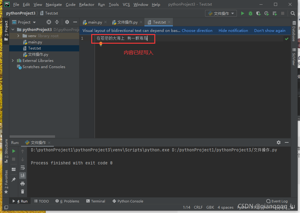 fobj.write('在蒼茫的大海上 有一群海鳥')