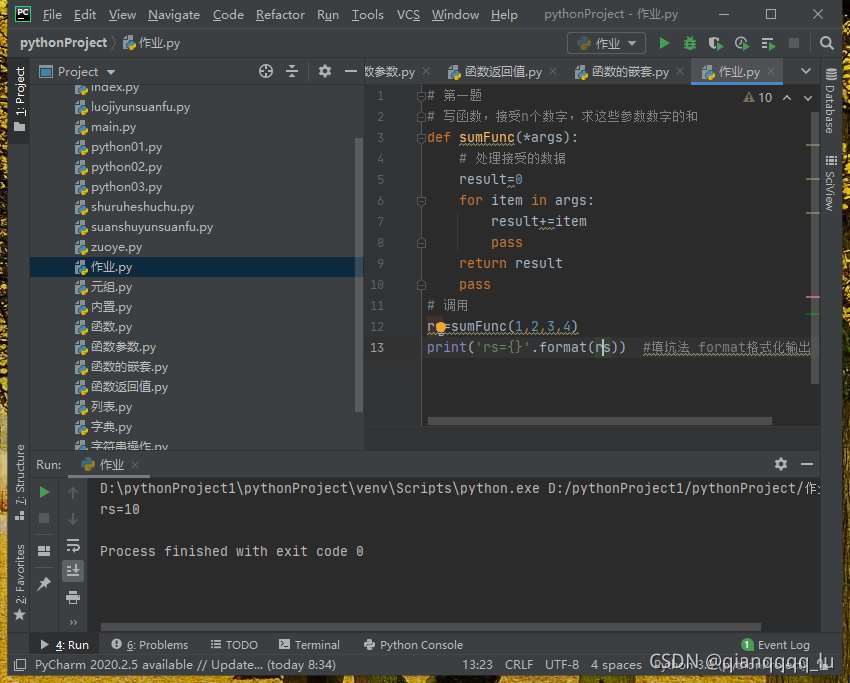 # 寫(xiě)函數(shù),接受n個(gè)數(shù)字,求這些參數(shù)數(shù)字的和