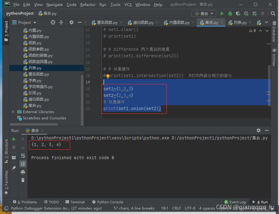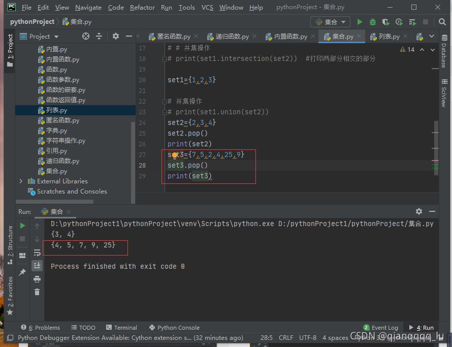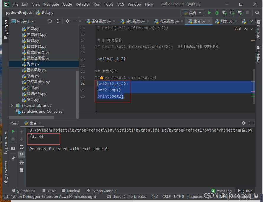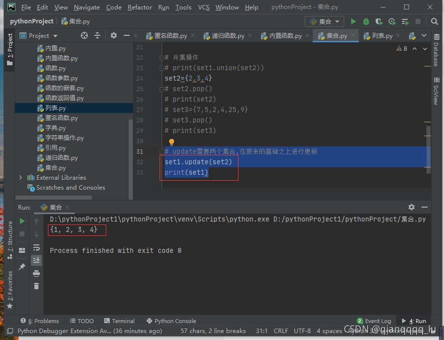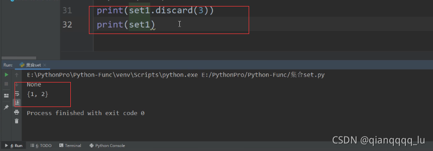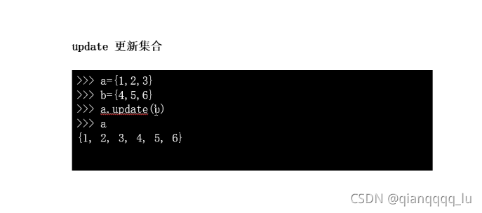 # update需要兩個集合,在原來的基礎(chǔ)之上進行更新 set1.update(set2) print(set1)