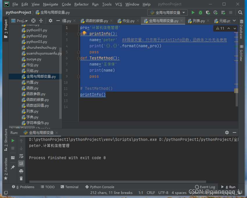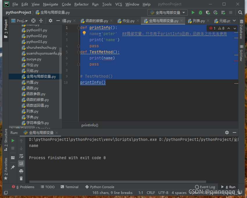 name='peter' ##局部變量,只作用于printInfo函數(shù),函數(shù)體之外無法使用
