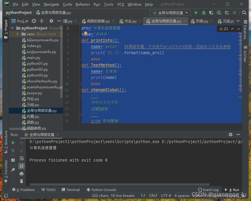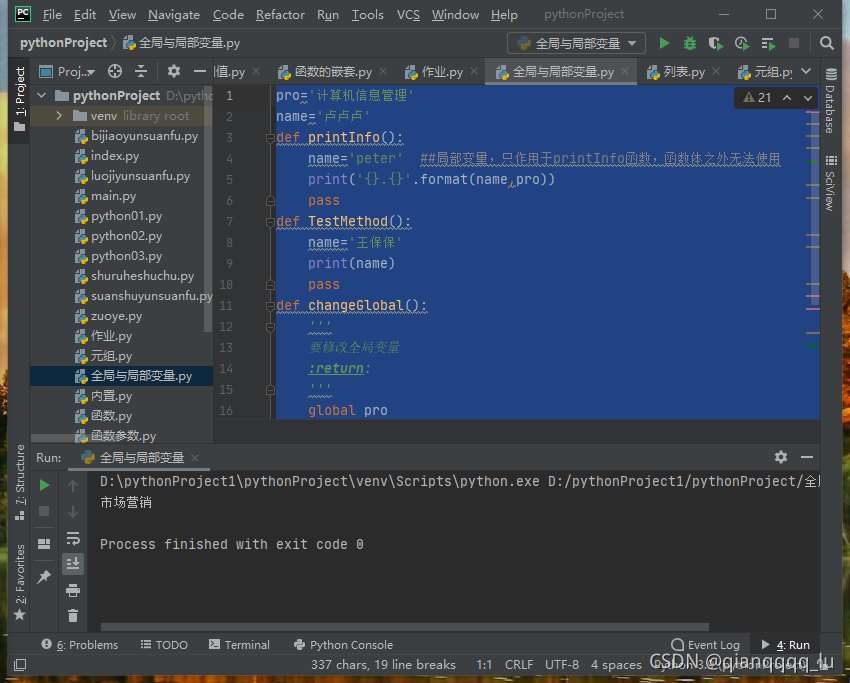 pro='計(jì)算機(jī)信息管理' #一個全局變量,作用域的范圍不同