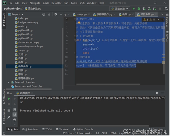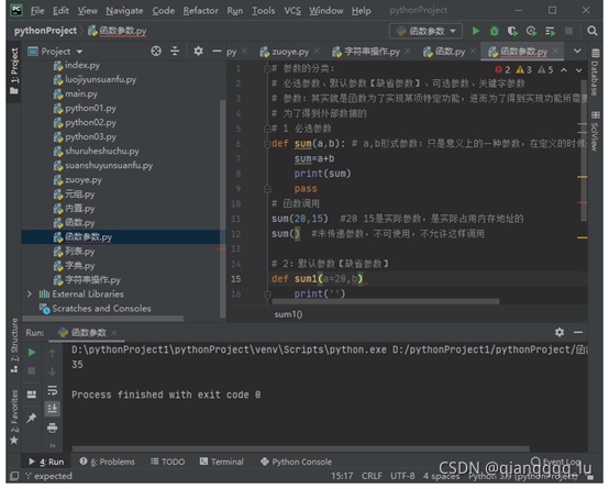 sum(20,15) #20 15是實際參數,是實際占用內存地址的