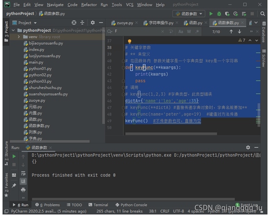 # keyFunc(name='peter',age=19) #鍵值對方法傳遞
