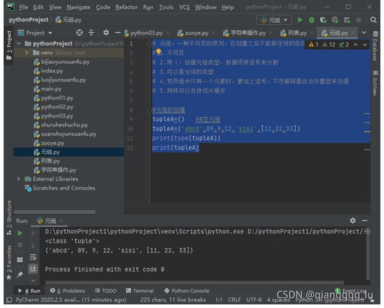 # 2.用()創(chuàng)建元組類型,數(shù)據(jù)項(xiàng)用逗號來分割