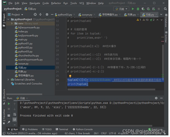 tupleA[5][0]='2222223334dds' ##可以對元組中列表類型的數(shù)據(jù)進(jìn)行修改 print(tupleA)