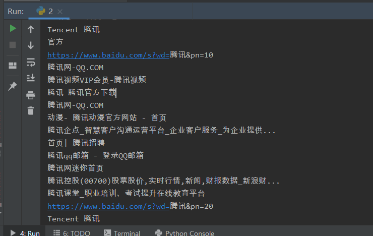 url = 'https://www.baidu.com/s?wd=騰訊&pn=' + str(c)+'0'