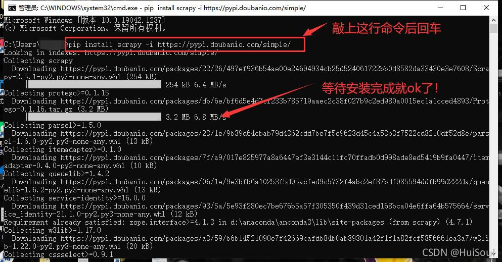 pip install scrapy -i https://pypi.doubanio.com/simple/ # 這句話后面 -i https://pypi.doubanio.com/simple/ 表示使用豆瓣的源,這樣安裝會(huì)更快
