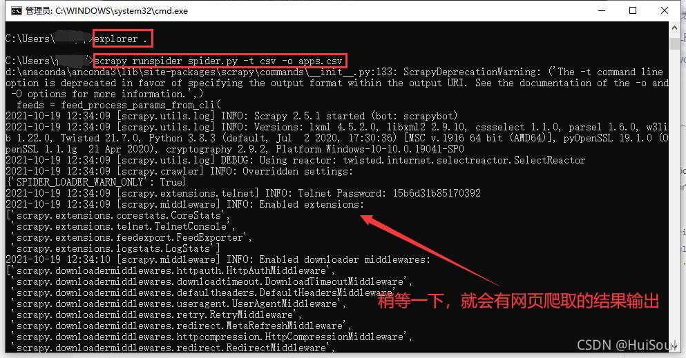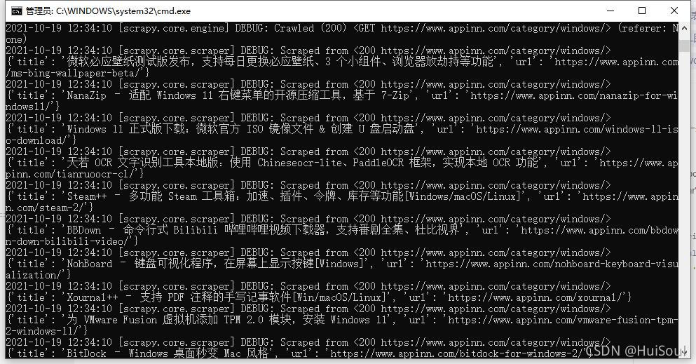 scrapy runspider spider.py -t csv -o apps.csv # spider.py 是剛剛寫的爬蟲代碼的文件名 # -t 表示輸出的文件格式,我們用 csv,方便用 Excel 等工具打開 # -o 表示輸出的文件名,所以執(zhí)行完會(huì)出現(xiàn)一個(gè) apps.csv 的文件