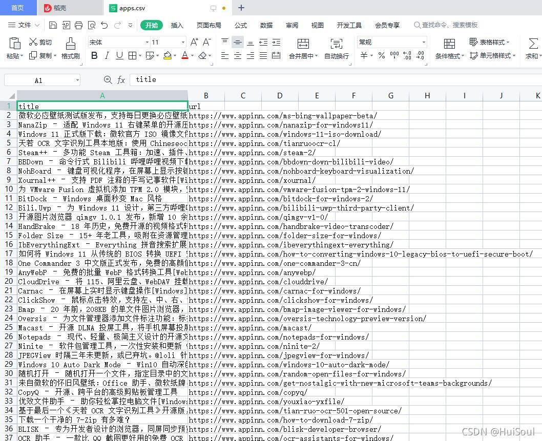 以及目錄里多出來(lái)一個(gè) apps.csv 文件。有 Excel 的同學(xué)可以用 Excel 打開 apps.csv,或者直接用記事本或者其他編輯器打開它。