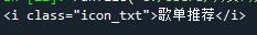 如果想要獲取歌單推薦這一行的內(nèi)容,我們就需要先對歌單推薦的HTML標(biāo)簽進(jìn)行識別,我們發(fā)現(xiàn)它在class="icon_txt"的i標(biāo)簽下,接著就可以通過以下這種方法進(jìn)行提取