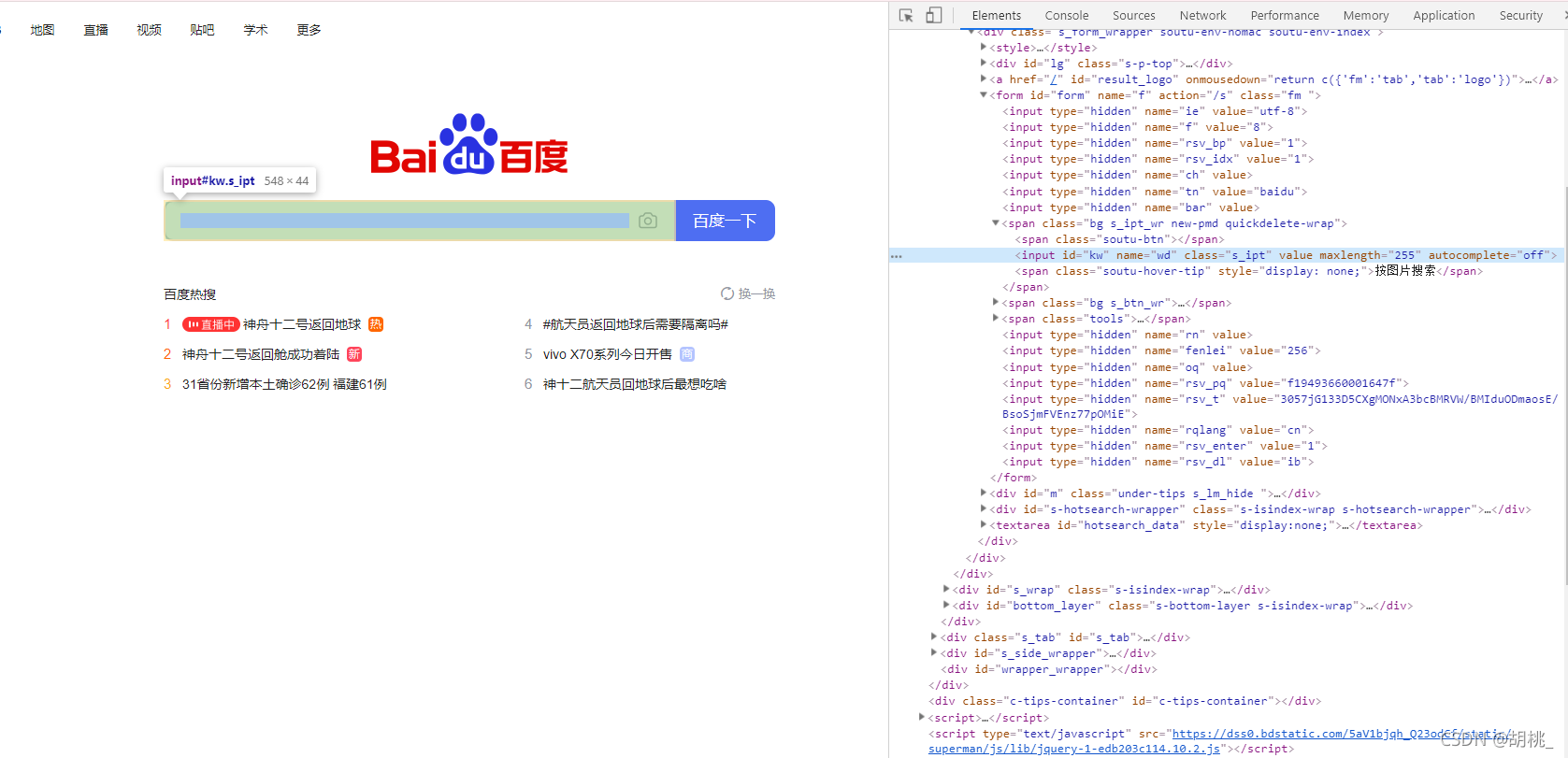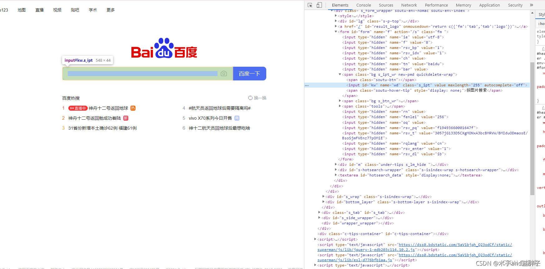 // 搜索百度使用f12定位到輸入框的位置 <input id="kw" name="wd" class="s_ipt" value="" maxlength="255" autocomplete="off">