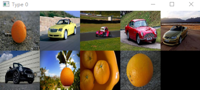那么這么做的缺陷也是十分明顯的。例如,對(duì)于兩張一模一樣的圖像,我們將前者向左平移一個(gè)像素。這么做下來后兩張圖像在感官上幾乎沒有任何區(qū)別,但由于整體平移會(huì)導(dǎo)致兩者的圖像矩陣逐像素比較的結(jié)果差異巨大。以橘子汽車聚類為例,實(shí)驗(yàn)結(jié)果如下: