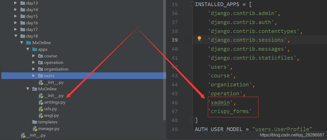 在users App下創(chuàng)建xadmin.py 文件