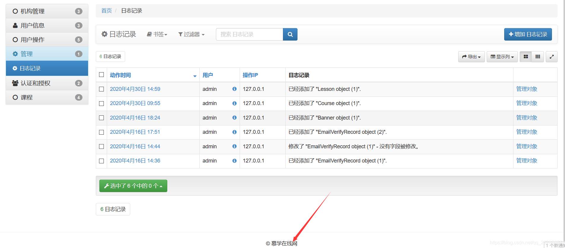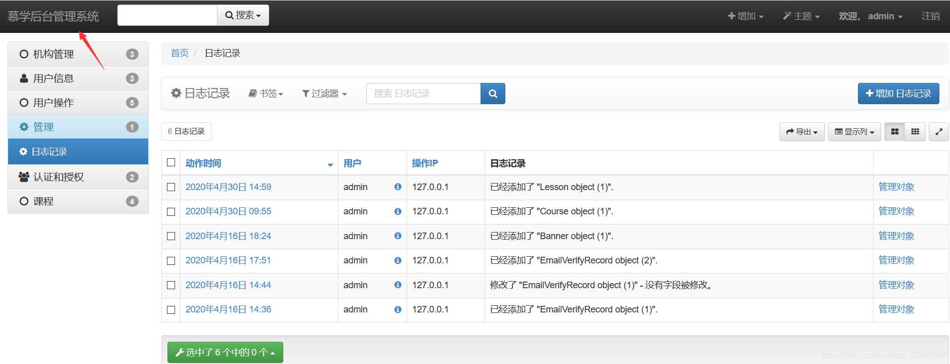 class GlobalSettings(object): site_title = '慕學(xué)后臺管理系統(tǒng)' xadmin.site.register(views.CommAdminView,GlobalSettings)