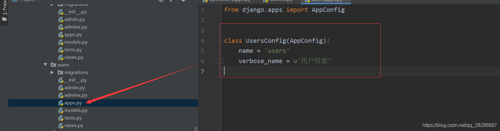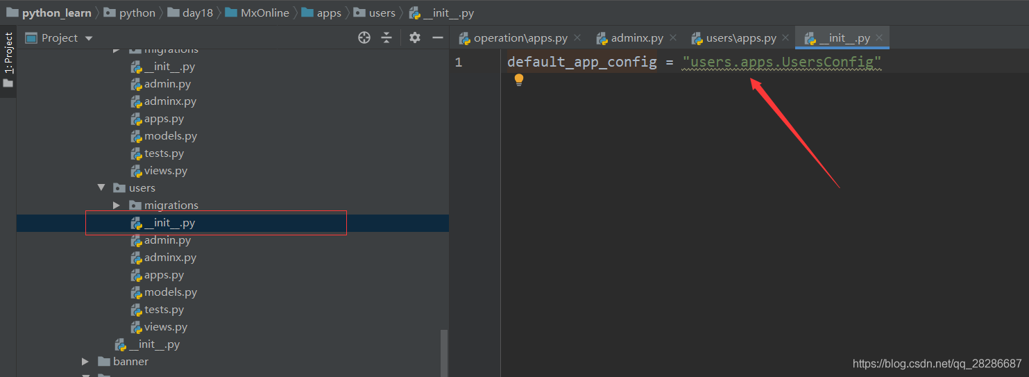 修改users App下的__init__.py文件為如下代碼: