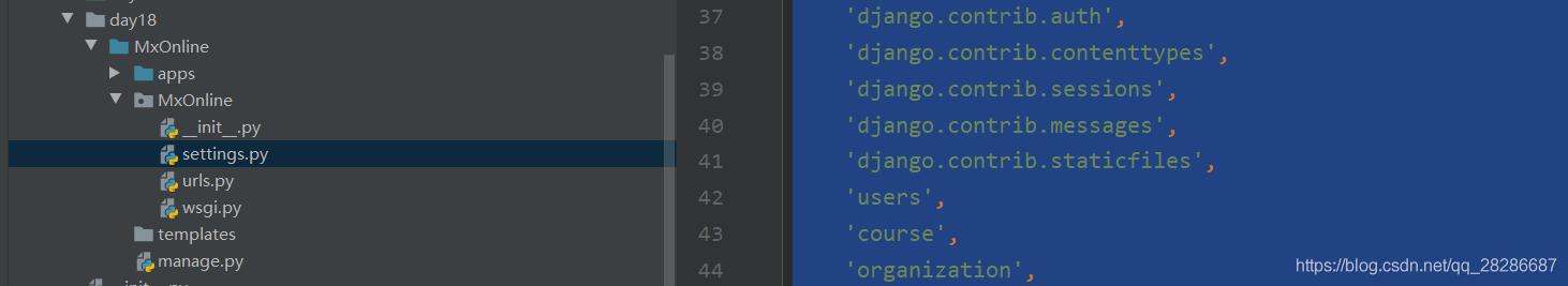 'django.contrib.admin', 'django.contrib.auth', 'django.contrib.contenttypes', 'django.contrib.sessions', 'django.contrib.messages', 'django.contrib.staticfiles', 'users', 'course', 'organization', 'operation'
