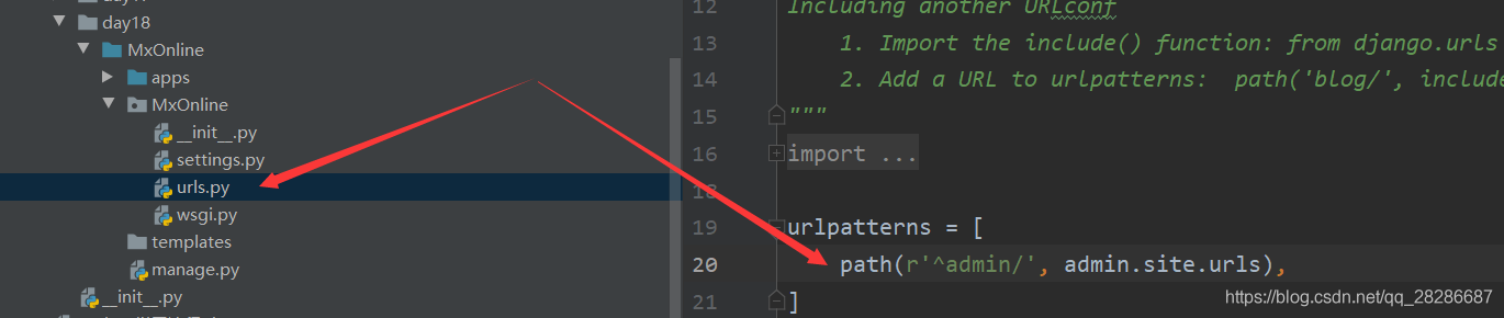 通常我們在生成項目時會在 urls.py 中自動設(shè)置好,我們只需去掉注釋即可。