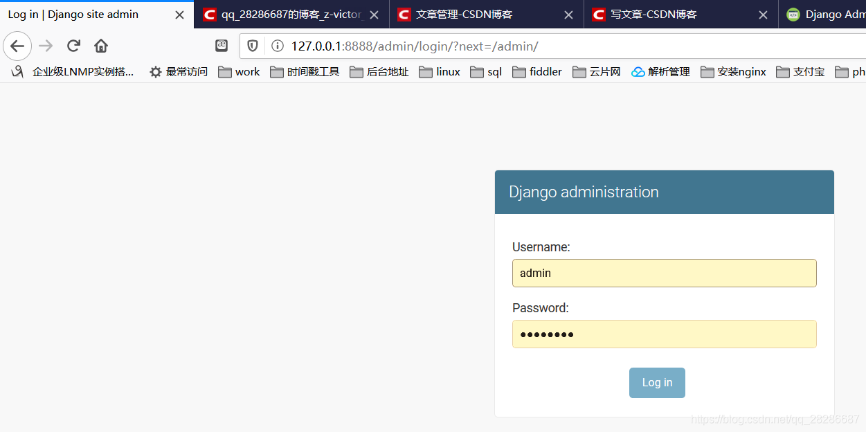 瀏覽器訪問:127.0.0.1:8888/admin/