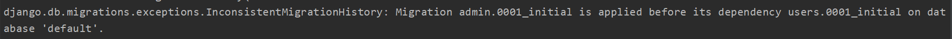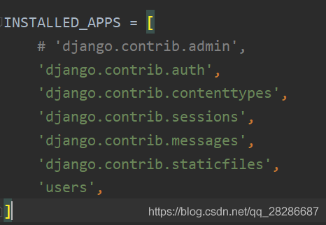 解決users.0001_initial,將配置文件中的INSTALLED_APPS中的django.contrib.admin注釋掉