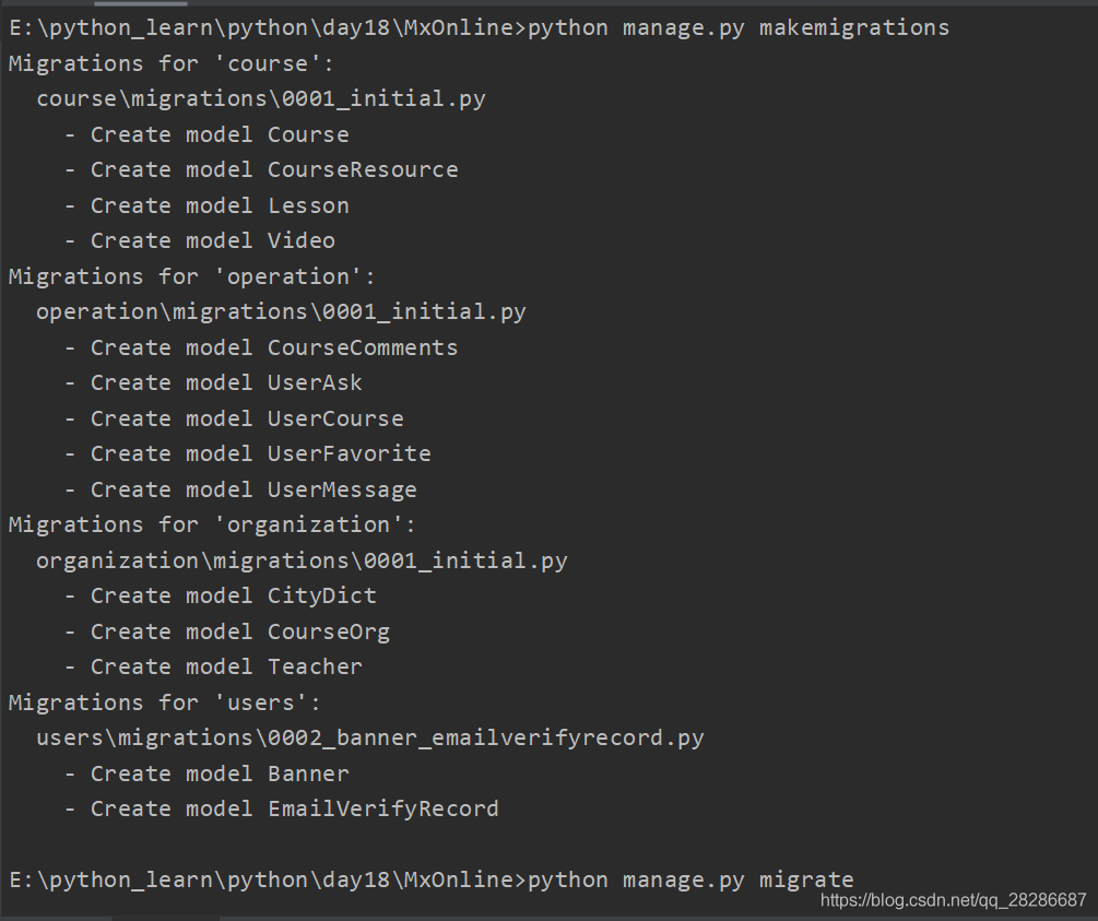 數(shù)據(jù)表生成與修改各APP models設(shè)計(jì)