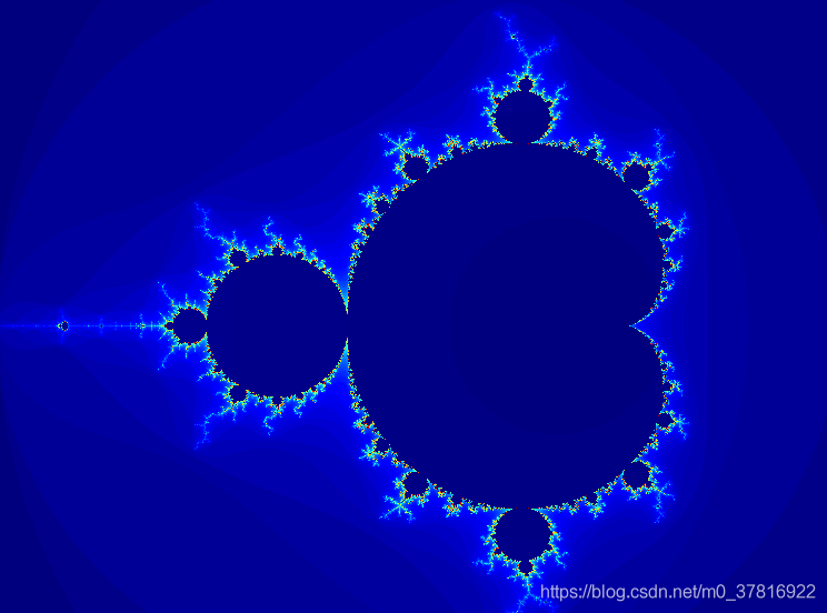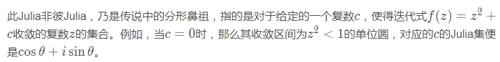 特別地,當(dāng) c = z的初始值時(shí),符合收斂條件的 z 的便構(gòu)成大名鼎鼎的Mandelbrot集