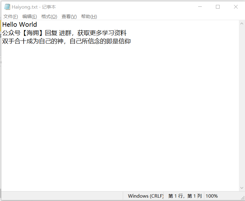 with open(r'Haiyong.txt', 'w',encoding='UTF-8') as file: