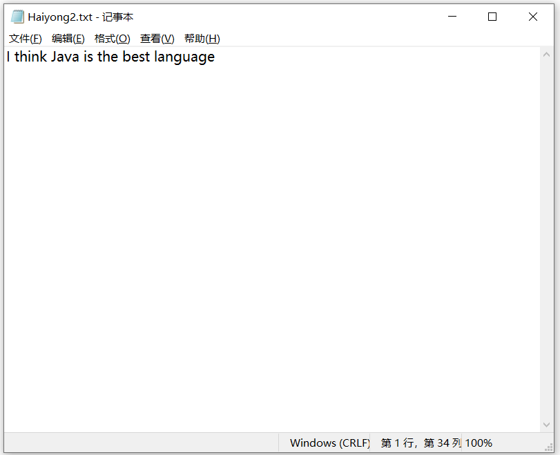 讓我們看看如何在文本文件中搜索和替換文本。首先,我們創(chuàng)建一個文本文件,我們要在其中搜索和替換文本。將此文件設(shè)為 Haiyong.txt,內(nèi)容如下: