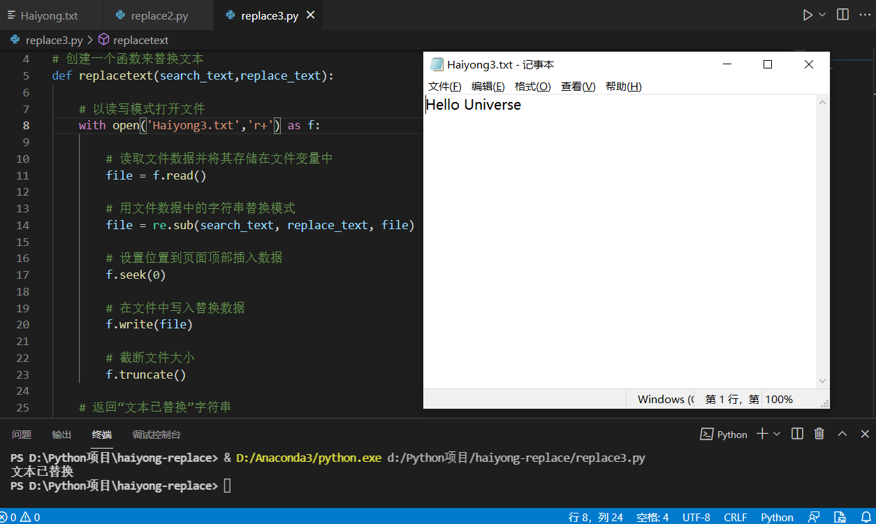 # 在我們的文本文件中寫入替換的數(shù)據(jù)