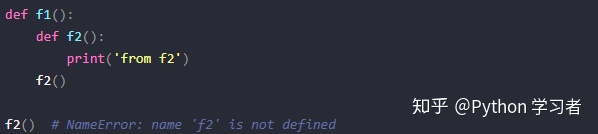 局部名稱空間:用于存放函數(shù)調(diào)用期間函數(shù)體產(chǎn)生的名字,如下面代碼的f2