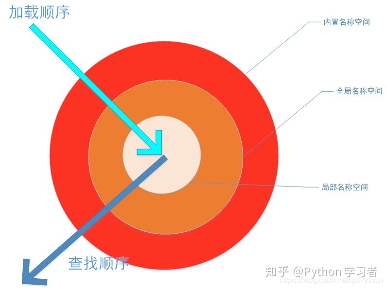 由于.py文件是由Python解釋器打開的,因此一定是在Python解釋器中的內(nèi)置名稱空間加載結(jié)束后,文件才開始打開,這個時候才會產(chǎn)生全局名稱空間,但文件內(nèi)有某一個函數(shù)被調(diào)用的時候,才會開始產(chǎn)生局部名稱空間,因此名稱空間的加載順序為:內(nèi)置–》全局–》局部。