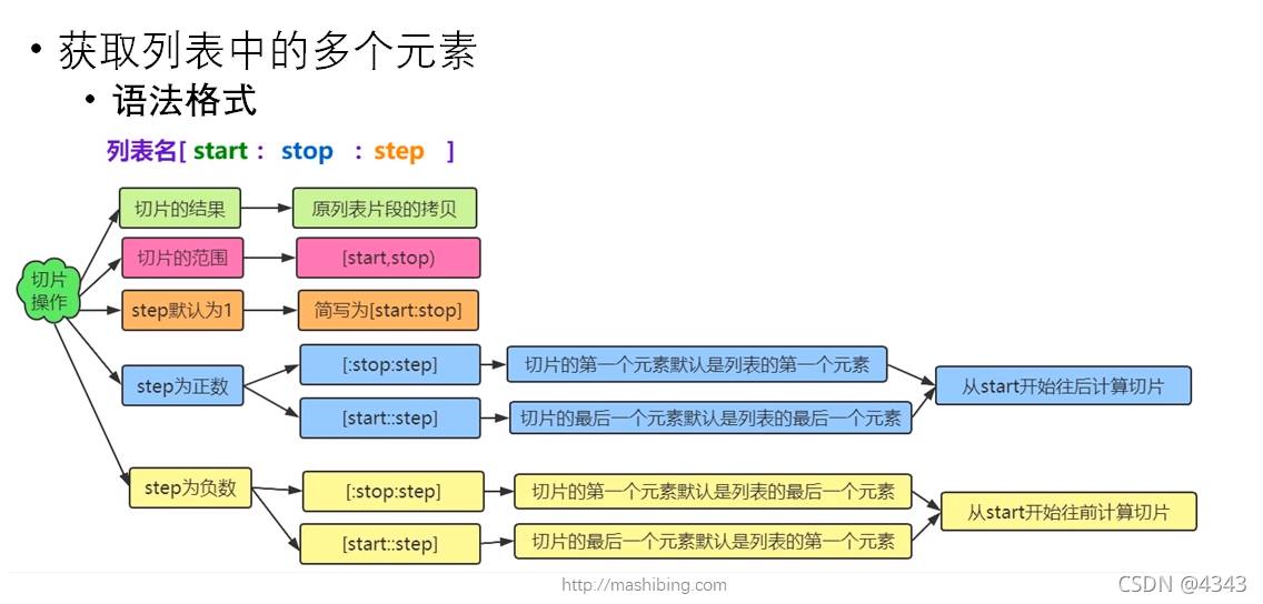 注意:當(dāng) x:x:-x,即步長(zhǎng)為負(fù)數(shù)時(shí),相當(dāng)于start從后往前
