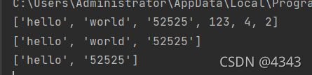 lst.remove('hello') #刪除指定過(guò)的一個(gè)元素