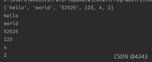 lst = ['hello','world','52525',123,4,2] print(lst) for item in lst : print(item)