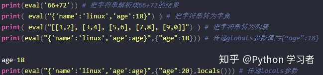 上述例子中,展示了eval()的3個(gè)應(yīng)用: