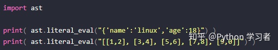literal_eval() 函數(shù):會(huì)判斷需要計(jì)算的內(nèi)容計(jì)算后是不是合法的python類型,如果是則進(jìn)行運(yùn)算,否則就不進(jìn)行運(yùn)算。