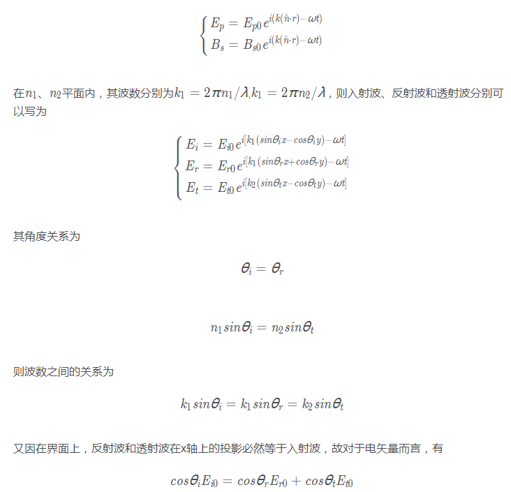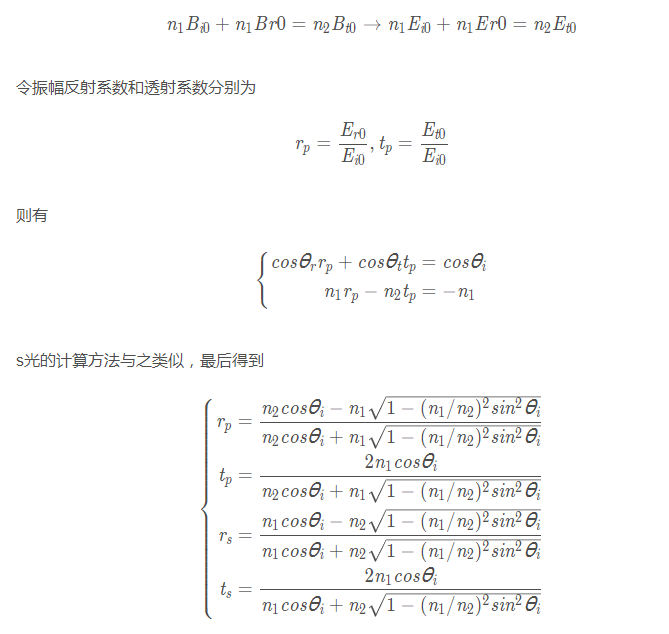幾何光學(xué)可以通過費(fèi)馬原理得到折射定律,但是無法獲知光波的透過率,菲涅耳公式在幾何光學(xué)的基礎(chǔ)上,解決了這個(gè)問題。